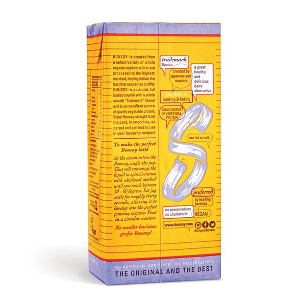 Bonsoy is a natural, full bodied soymilk with a ‘Trademark’ smooth subtle flavour. Bonsoy is an excellent source of vegetable protein. Enjoy Bonsoy straight from the pack, in smoothies, on cereal or in your favourite recipe!